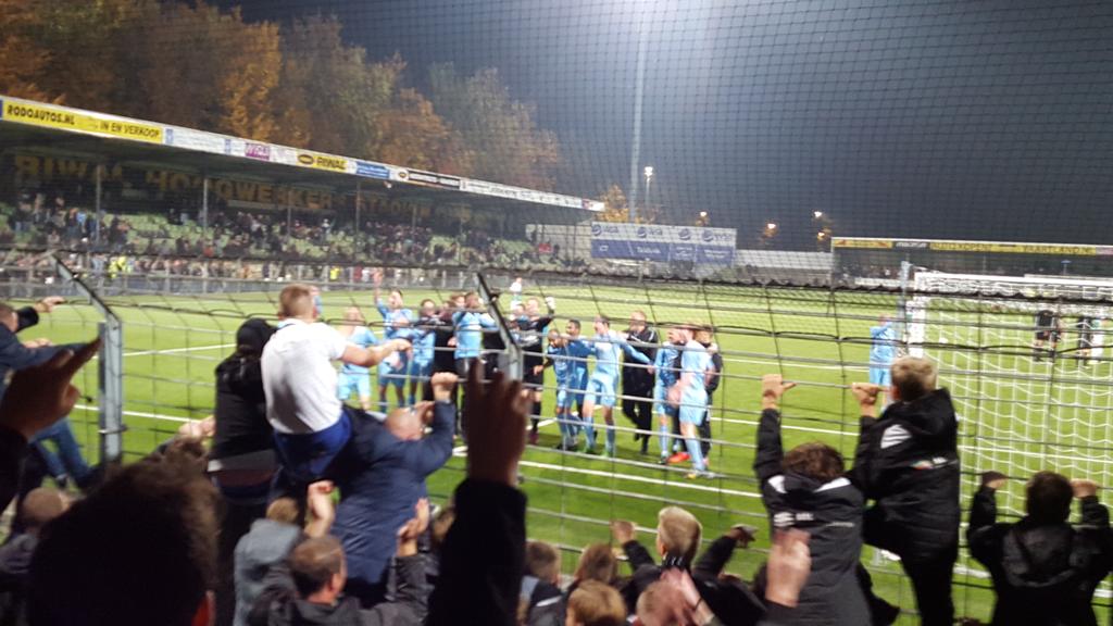 pochi metri rispetto alla linea mediana e vedendo il portiere del Dordrecht Peter Leeuwenburgh fuori dai pali, pennella un